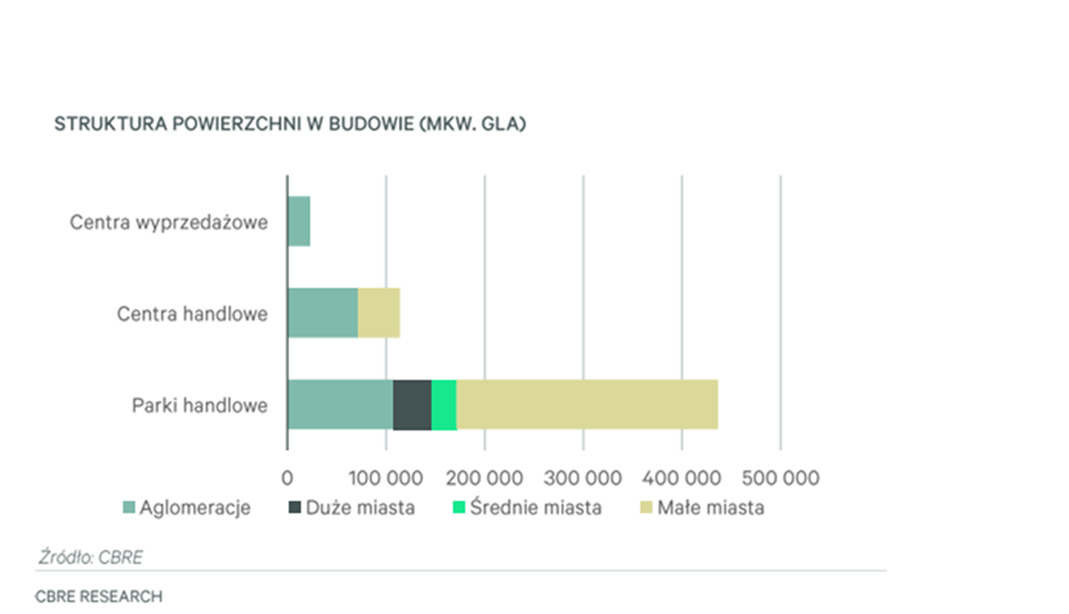 - 76% powierzchni handlowej w budowie to parki handlowe.
