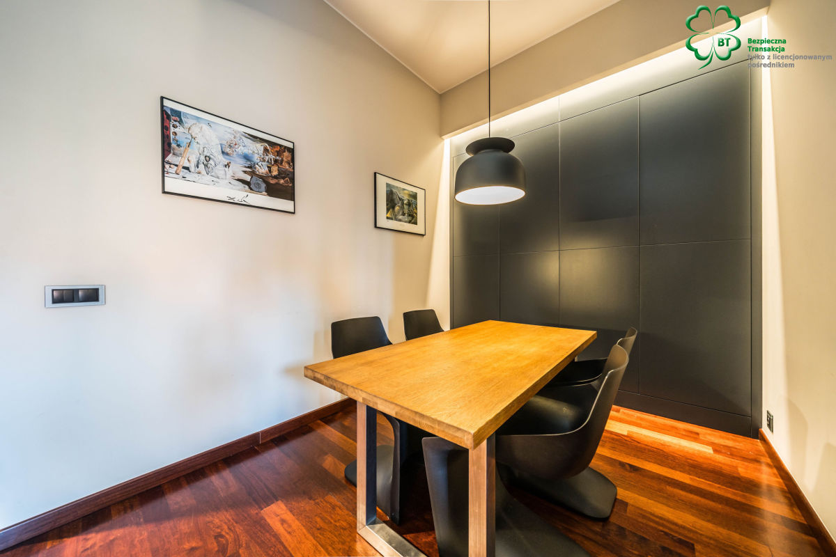 Atmosferę luksusu dopełniają wysokie sufity i duże okna.