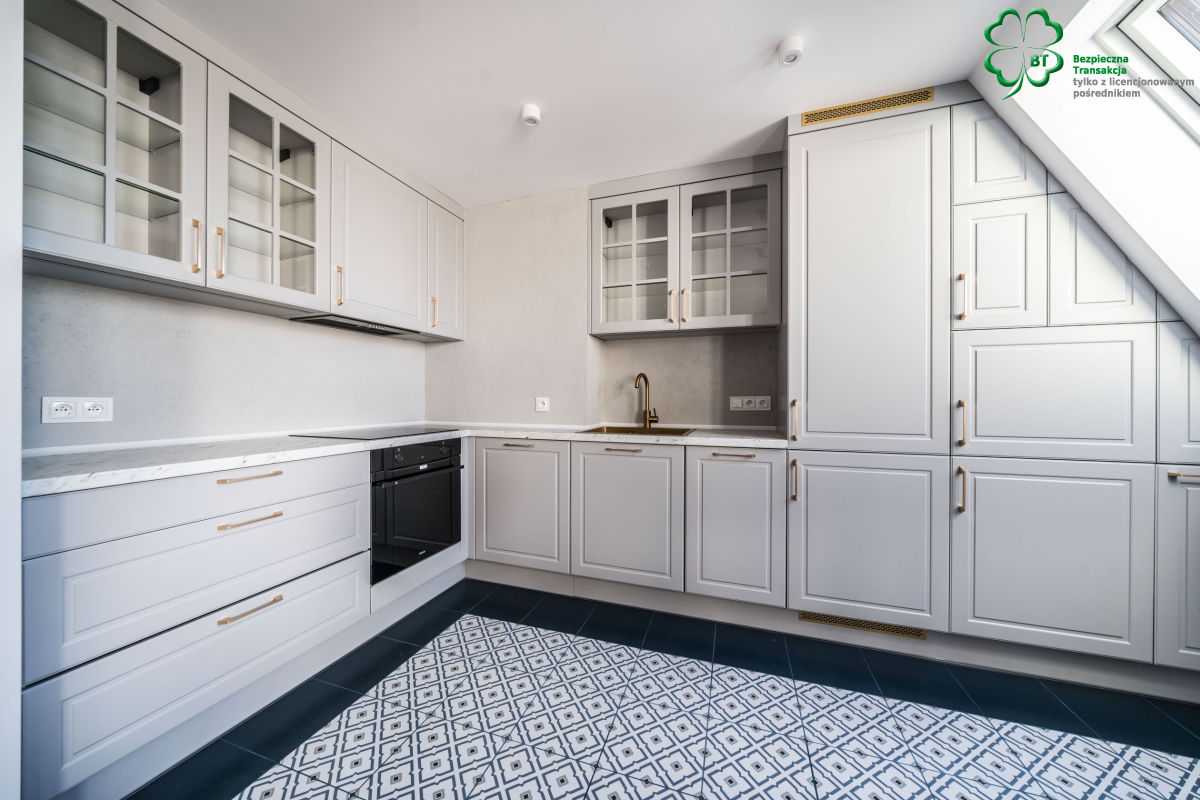 -w pełni wyposażonego w nowy sprzęt AGD aneksu kuchennego w eleganckiej zabudowie