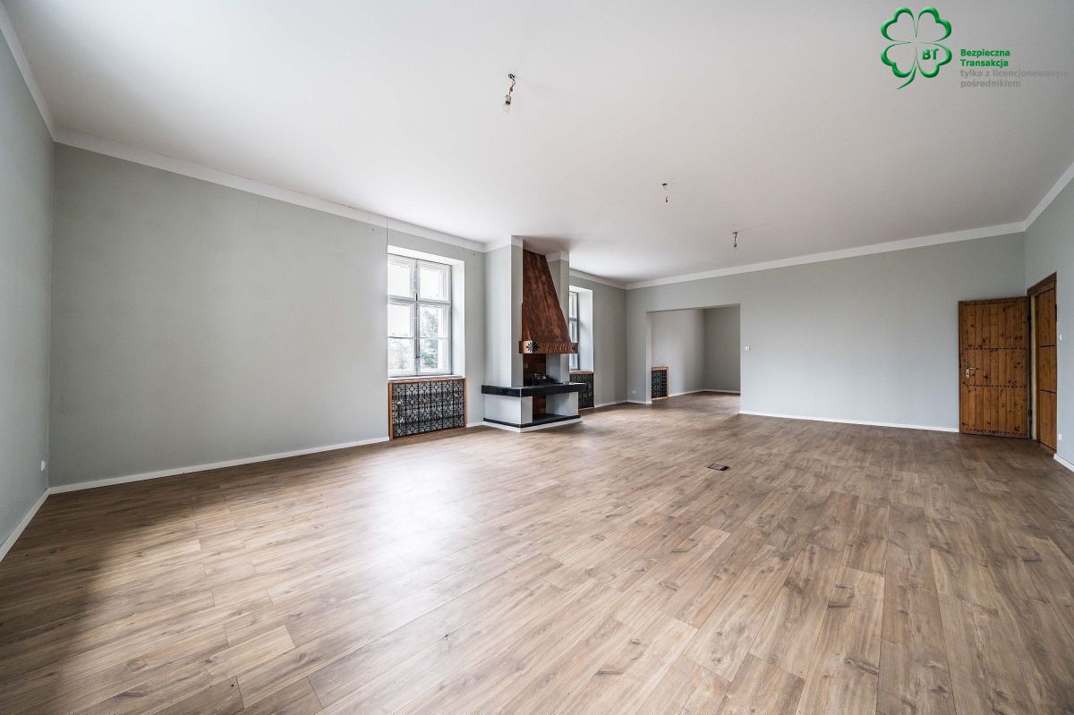 Dostojne wnętrza, stara stolarka drzwiowa, okienna, sztukaterie, w wielu pomieszczeniach pozostały oryginalne, drewniane podłogi. Uroku dodaje taras z widokiem na, zabytkowy park.